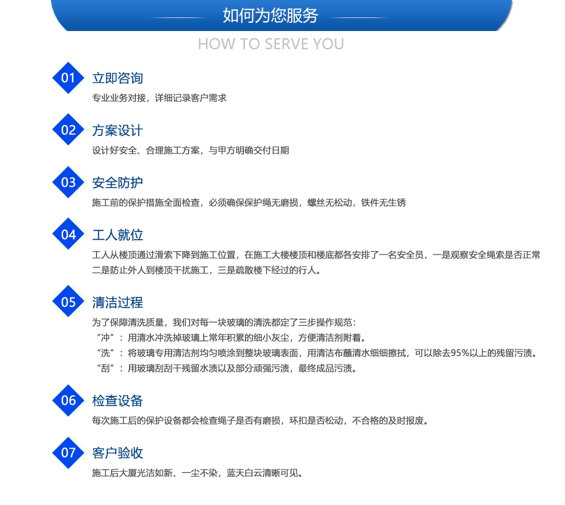 以客戶為中心,關(guān)注客戶需求,為客戶提供最好性價(jià)比的高空清潔服務(wù)。